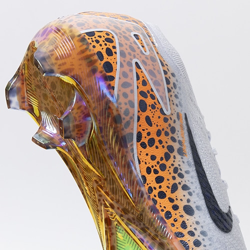 ●マイクロモールディング加工のテクスチャーと粘着性のあるNike Gripknit素材により、スパイクが足にフィットし、ボールタッチの精度がアップ。ハイスピードでドリブルするときやシュートを決めるときのボールコントロールエリアが広がりました。 足の形にぴったりとフィットし、フィールドが濡れていても乾いていても同様にグリップ性を発揮します。