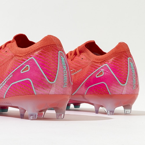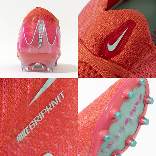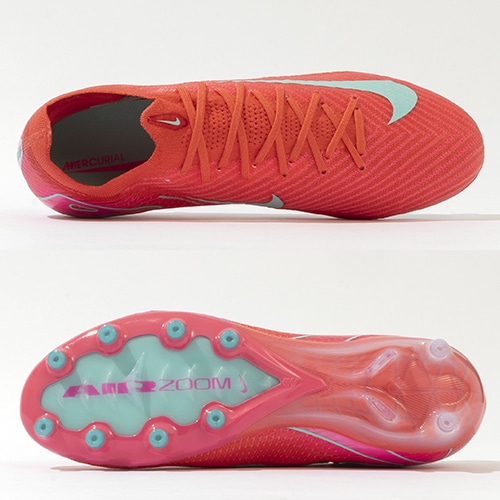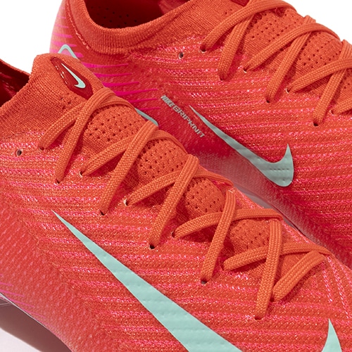 ●全面にFlyknitアッパーを使用してスピードを追求。 驚きの軽さで丈夫なAtomknitをサイドに使用した、軽量でサポート性に優れたデザイン。 Gripknit、Atomknit、Flyknitを組み合わせて、マーキュリアル史上最も薄いアッパーを実現。ボールとの距離を縮めるとともに、すぐに足に馴染みます。