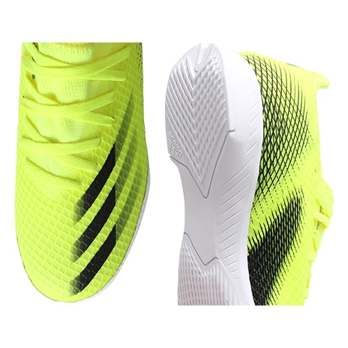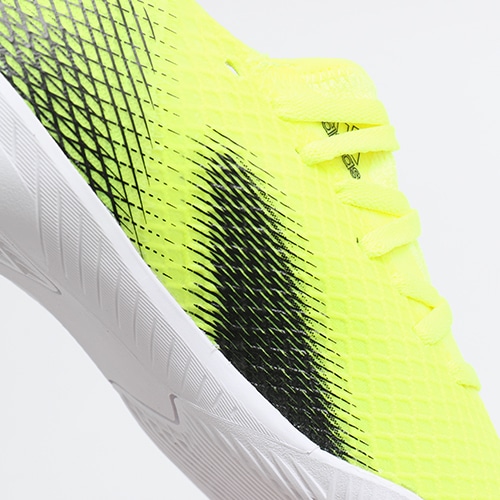 - 2021年の新しいコレクション『SUPERLATIVE PACK(スーパーラティブ パック)』、煙のように敵を欺き、ディフェンスを突破する。異次元のスピードを追求したadidas「X GHOSTED(エックス ゴースト)」のIN(インドアコート)対応ジュニア用ベーシックモデルトレーニングシューズ。