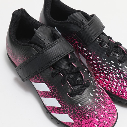 - 2021年の春夏コレクション『SUPERSPECTRAL PACK(スーパースペクトラル パック)』、ゲームを支配するプレーメーカーに向けてアップグレードした「PREDATOR FREAK(プレデター フリーク)」のTF(ターフコート)対応ジュニア用エントリーモデルトレーニングシューズのベルクロタイプ。