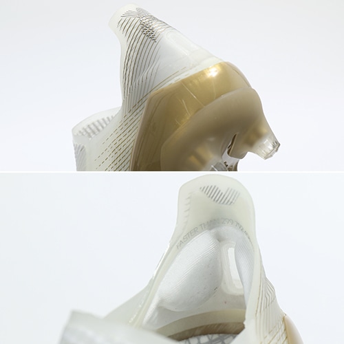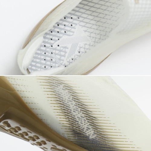 ●レースレス+バキュームフィット:スムースなステップインと、安定した足のロックを支えるために、ストレッチ性に優れる素材を採用。シューレースもなくし、足にぴったりとフィットさせることで、ボールによりダイレクトに力を伝えることに貢献。