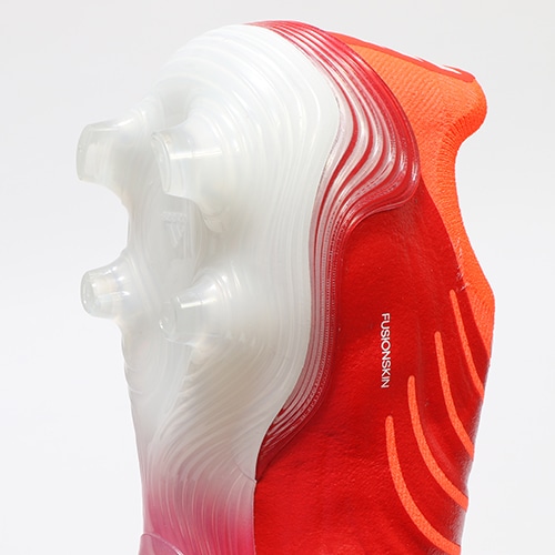 ●インサイド、アウトサイドに配置されたTOUCHPODS(タッチポッド)がボールの勢いを吸収し、足に吸い付くような安定感と、研ぎ澄まされた感覚でボールを扱うことを実現。