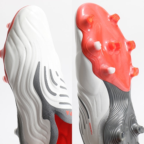 ●データ分析に基づき、新たに開発されたセンスフレーミングアウトソール。内側2本のスタッドに柔らかな素材を採用することで、地面からの衝撃を吸収し、より優れた足の裏でのコントロール性を追求。