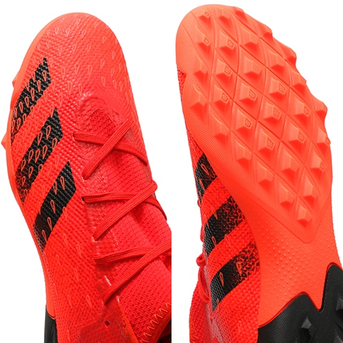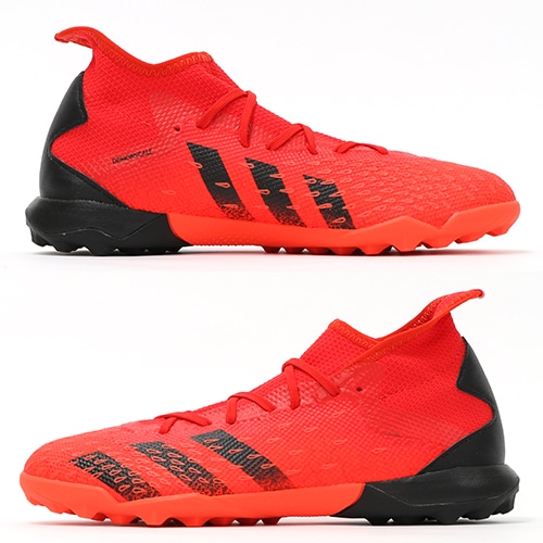 - ゲームを支配するプレーメーカーに向けてアップグレードした「PREDATOR FREAK(プレデター フリーク)」のTF(ターフコート)対応ハイカットベーシックモデルトレーニングシューズ。