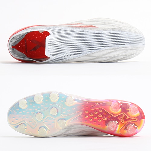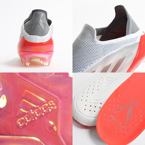 身体的な速さを判断の速さで迷いなきプレースピードを生み出すエックスシリーズ最新モデルadidas「X SPEEDFLOW(エックス スピードフロー)」のAG(アーティフィシャルグラス)対応プレミアムモデルスパイク。