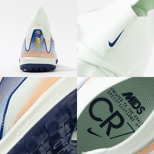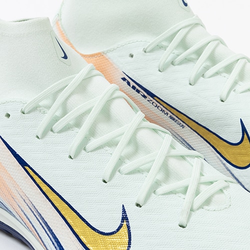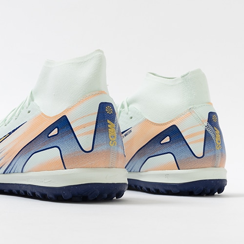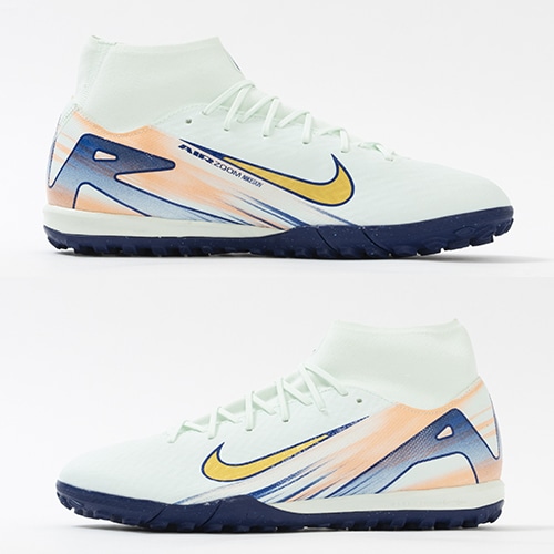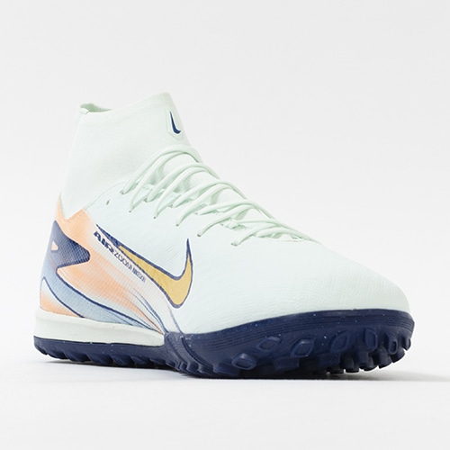 NikeのAirテクノロジーが最大限に機能を発揮する『AIR ZOOM MERCURIAL(エア ズーム マーキュリアル)』の軽量でサポート性に優れ、爆発的なプレーをサポートするハイカット形状「SUPERFLY(スーパーフライ) 10」のACADEMY(アカデミー)/コアモデルTF(ターフコート)対応トレーニングシューズ。