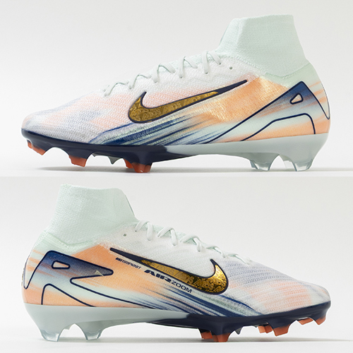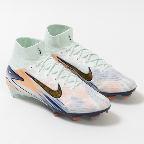 - NikeのAirテクノロジーが最大限に機能を発揮する『AIR ZOOM MERCURIAL(エア ズーム マーキュリアル)』の軽量でサポート性に優れ、爆発的なプレーをサポートするハイカット形状「SUPERFLY(スーパーフライ) 10」のELITE(エリート)/ステートメントモデルFG(ファームグラウンド)対応スパイク。