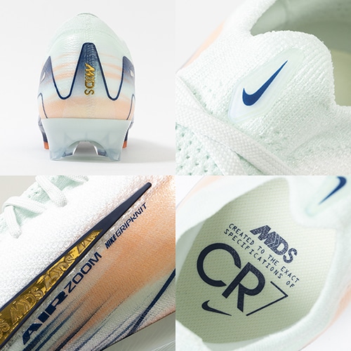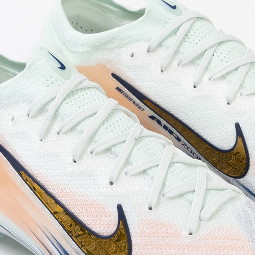 ●全面にFlyknitアッパーを使用してスピードを追求。 驚きの軽さで丈夫なAtomknitをサイドに使用した、軽量でサポート性に優れたデザイン。 Gripknit、Atomknit、Flyknitを組み合わせて、マーキュリアル史上最も薄いアッパーを実現。ボールとの距離を縮めるとともに、すぐに足に馴染みます。