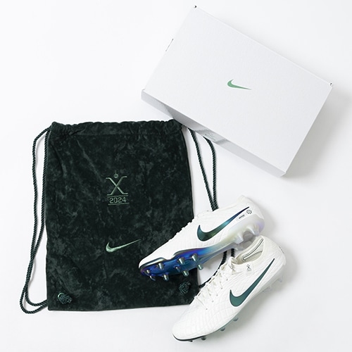 NikeのDNAを受け継ぐ旧バージョンのティエンポの要素をベースに、未来的なテクスチャーとグラフィックで仕上げました。『The Nike Tiempo Emerald』で採用されているカラーを反転させた限定スパイク。