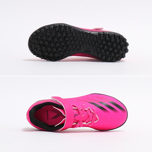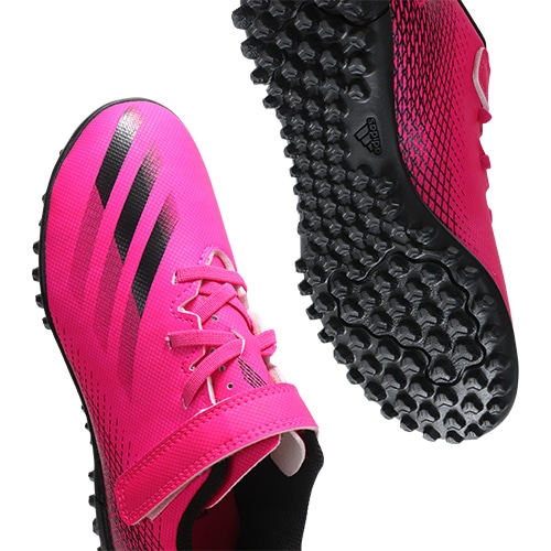 - 2021年の春夏コレクション『SUPERSPECTRAL PACK(スーパースペクトラル パック)』、異次元のスピードを追求したadidas「X GHOSTED(エックス ゴースト)」のTF(ターフコート)対応ジュニア用エントリーモデルトレーニングシューズのベルクロタイプ。