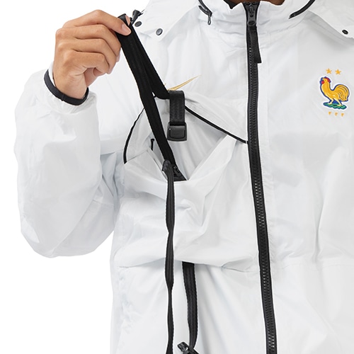 母国への愛をフィールドでアピールしましょう。 滑らかなリップストップ素材とメッシュの裏地を使用し、軽量で通気性に優れた着心地と耐久性を実現。 フードは、バンジーコードで調節できるジッパー付きの襟の中に収納可能。必要に応じて、悪天候に対応できます。