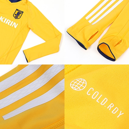 高い目標を支えるのは、それにふさわしいトレーニングギアのみ。大舞台に向けた選手着用のトップモデル。大胆な色使いが、鋼のような決意を象徴している。俊敏な動作に貢献する保温性を高めるCOLD. RDYが快適な着心地をもたらし、輝く未来に向けて躍動する日本代表をサポート。プラスチック廃棄物ゼロを目指すアディダスの取り組みの一つをカタチにした、リサイクル素材を60%以上使用したアイテム。
