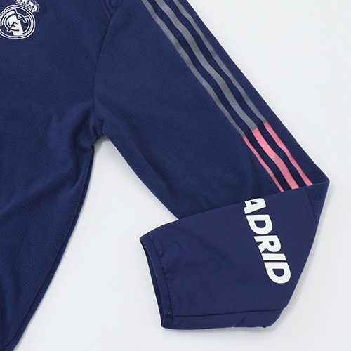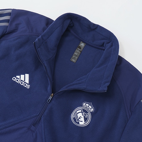 ヨーロッパサッカーが盛り上がるのは、冬の寒さが厳しくなってから。そこでアディダスは、スペイン中、そして大陸を飛び回るレアル・マドリードの選手たちのために、このトラベル フリーストップをデザイン。ソフトなポーラーフリース[裏起毛]が、冷たい風にさらされる駅や空港で寒さを防御。袖にあしらったクラブ名で、サポーターの誇りを見せつけられる。