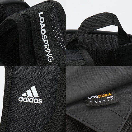 耐久性に優れたCORDURA ECO ファブリック (リサイクルポリエステル)を採用したバックパック。開口部が大きくシューズ、ウェア、ギアなどを簡単にパッキング可能。背面のエアメッシュパネルとLOADSPRINGショルダースハーネスによる衝撃吸収により、長時間快適に持ち運ぶことができる。