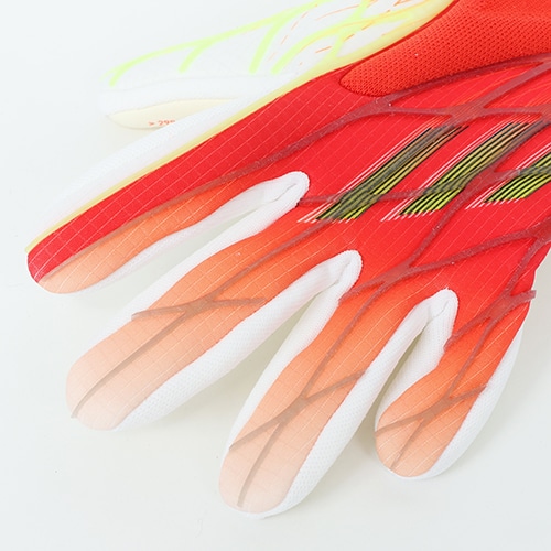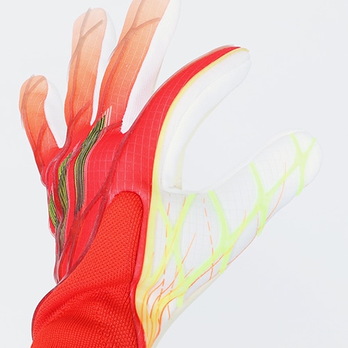 - adidas「X(エックス)」シリーズのフットウェアとデザイン連動した、GK(ゴールキーパー)グローブ。ゲーム展開が早くなると、ゴールキーパーとしての重要性も増してくる。ゴールの守護神のための、気が散る要素を排除した軽量設計のアディダス エックス プロ グローブが誕生。