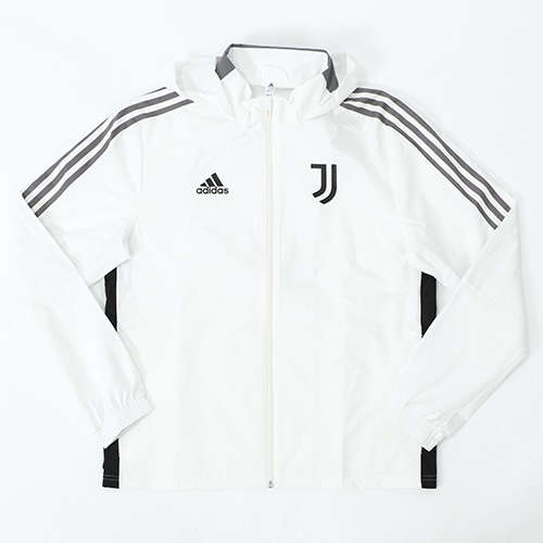 - セリエA(イタリア)、ユベントスのレプリカコレクション。2021-2022シーズンモデルオールウェザージャケット。メッシュの裏地付きの、撥水性を備えた丈夫なウーブンシェル。頭まですっぽり覆うこともできる、取り外せるフード付き。