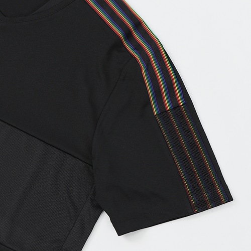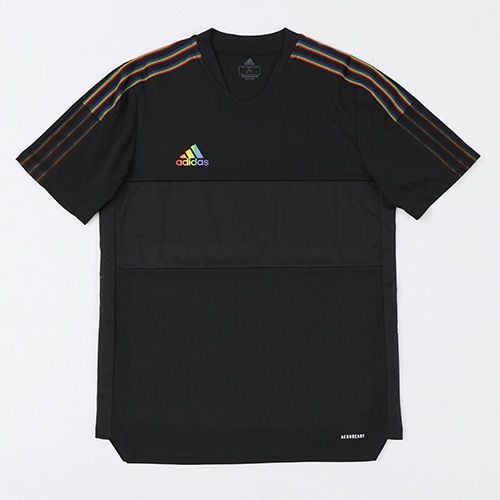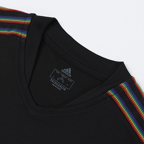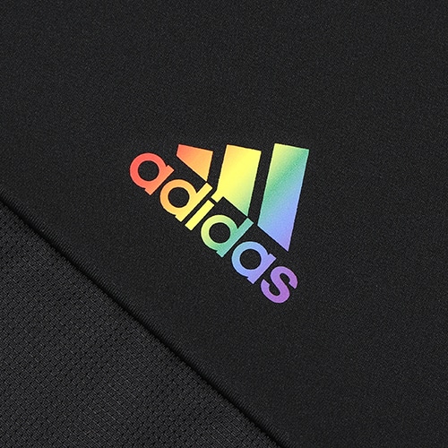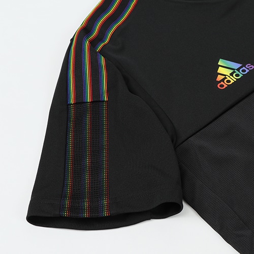 レインボーカラーのロゴをフィーチャーした、自分らしくいることの大切さをデザインにした半袖ジャージー。爽やかな風を感じさせるメッシュパネルと、吸湿性に優れたAEROREADY素材が、ドライな着心地を保つ。