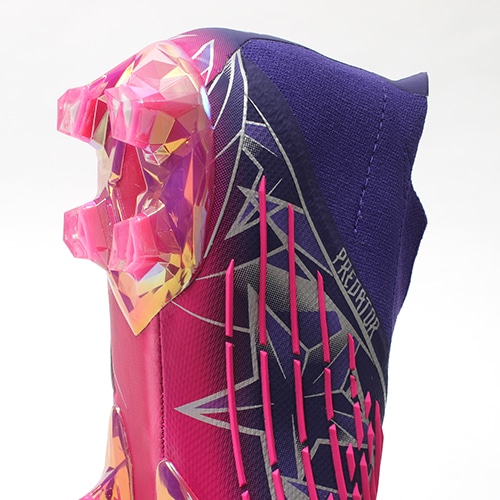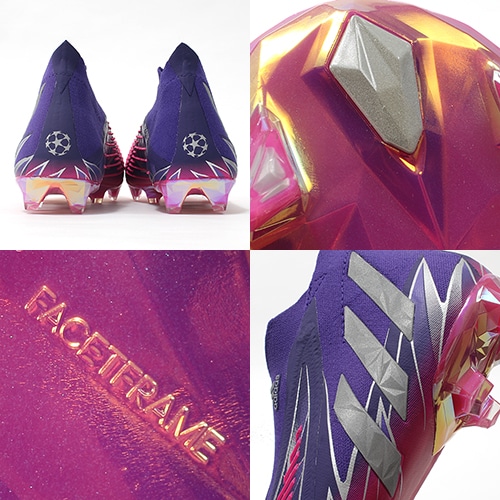 UEFAチャンピオンズリーグ公式試合球のアイコニックなデザインからインスピレーションを得た限定コレクション『CHAMPIONS CODE(チャンピオンズ コード)』が登場。アッパー全体にスターのグラフィックをあしらい、 すべての試合を輝かせる鮮やかなカラーリングを採用したadidas「PREDATOR EDGE(プレデター エッジ)」のFG(ファームグラウンド)対応シューレースレスのプレミアムモデルスパイク。
