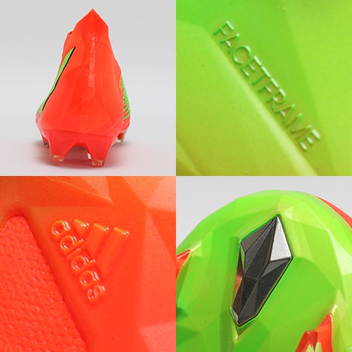 ●スプリットアウトソール前足部の重みのあるPower Facet(パワーファセット)が前足部への重量比率を高め、力のあるキックにも貢献する。ダイヤモンドのようなカッティングを施したアウトソールが、短めの天然芝で様々な角度への動きをサポート。