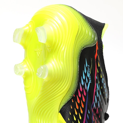 ●インサイド、アウトサイドに配置されたTOUCHPODS(タッチポッド)がボールの勢いを吸収し、足に吸い付くような安定感と、研ぎ澄まされた感覚でボールを扱うことを実現。