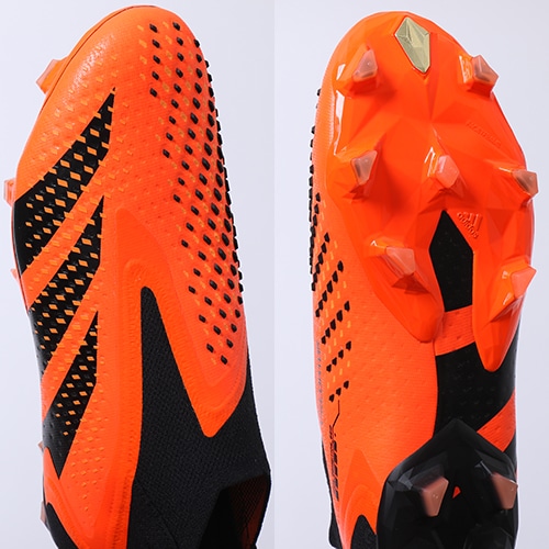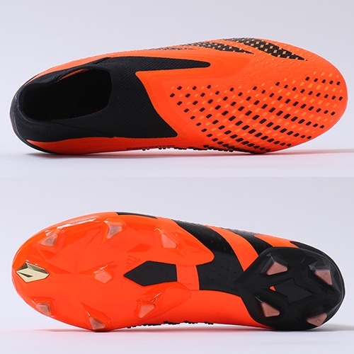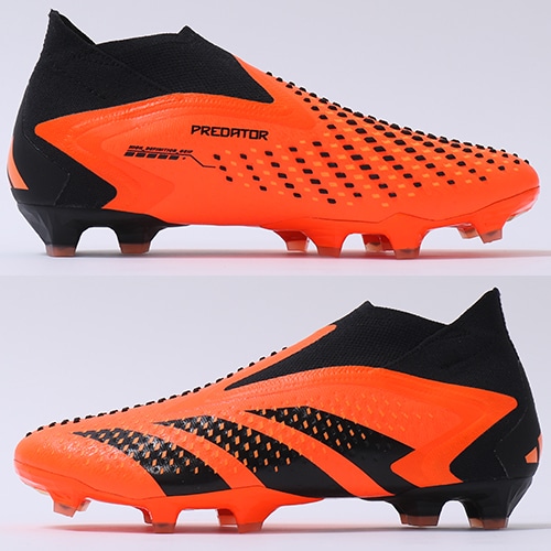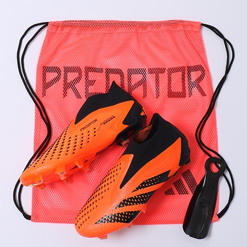 夏の燃え上がる新色コレクション『HEATSPAWN PACK』が登場。キック精度で勝負するキミへ。ゴールの隅を突くシュートや正確無比なキックを支えるテクノロジーを搭載した「PREDATOR ACCURACY(アキュラシー)」のFG(ファームグラウンド)対応シューレースレスのプレミアムモデルスパイク。