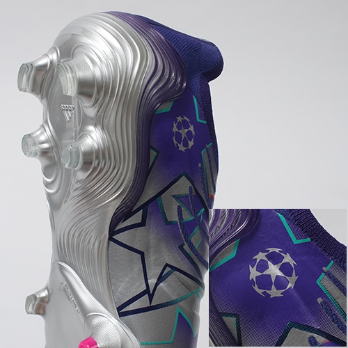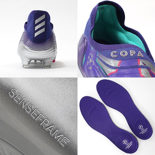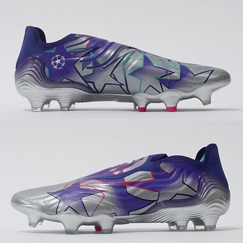 UEFAチャンピオンズリーグ公式試合球のアイコニックなデザインからインスピレーションを得た限定コレクション『CHAMPIONS CODE(チャンピオンズ コード)』が登場。アッパー全体にスターのグラフィックをあしらい、 すべての試合を輝かせる鮮やかなカラーリングを採用したadidas「COPA SENSE(コパ センス)」のFG(ファームグラウンド)対応レースレスプレミアムモデルスパイク。