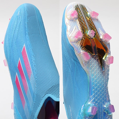 身体的な速さを判断の速さで迷いなきプレースピードを生み出すエックスシリーズ最新モデルadidas「X SPEEDFLOW(エックス スピードフロー)」のFG(ファームグラウンド)対応プレミアムモデルスパイク。