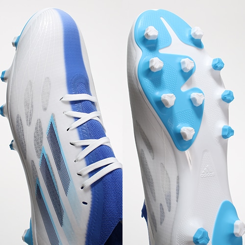 - あらゆるプレーを研ぎ澄ませ輝かせる、『DIAMOND EDGE(ダイヤモンド エッジ) PACK』が登場。身体的な速さを判断の速さで迷いなきプレースピードを生み出すエックスシリーズ最新モデルadidas「X SPEEDFLOW(エックス スピードフロー)」のHG/AG(ハードグラウンド/アーティフィシャルグラス)対応レギュラーモデルスパイク。