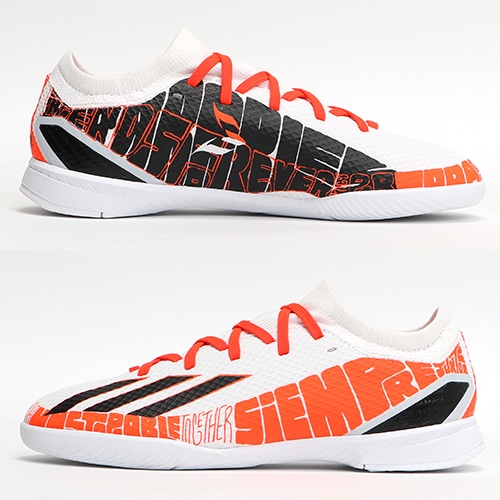 - リオネル・メッシ(MESSI)の類まれなスキルを讃える2022年秋冬コレクション『BALON TE ADORO PACK』が登場。あらゆる速さで、突き抜けろ。現代サッカーで求められる異なる3つのスピードを解き放つadidas「X SPEEDPORTAL(エックス スピードポータル)」のIN(インドアコート)対応ジュニア用トレーニングシューズ。