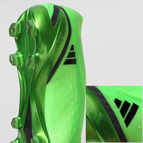 ●さらなる軽量性と高いフィット感を追求した「スピードスキン2.0」アッパーを採用。優れた軽量性で、主に1試合を通して多くの『スプリントスピード』に貢献。部分的に凹凸加工を施すことでボールのグリップ性も向上。プライムニットの履き口を採用し、ミニマルなレースレス構造を実現した。