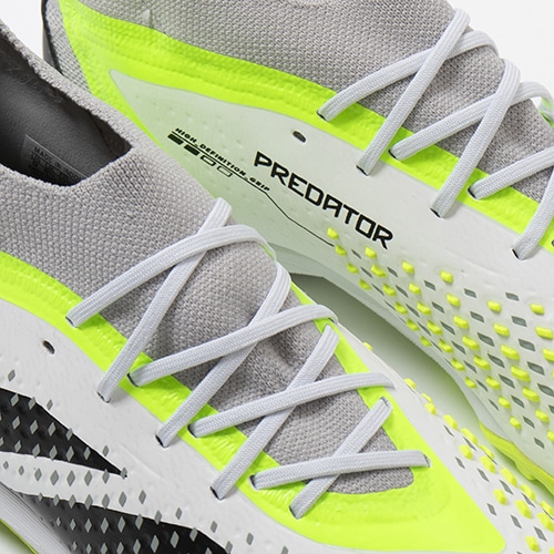 ●ソフトなつま先の素材が、より高いフィット感に貢献し、質の高いボールタッチを実現したハイブリッドタッチアッパー。キッキングゾーンにラバーエレメントを採用し、ソフトなアッパーフィーリングを維持しながら、ボールへのグリップ力を高める「ハイデフィニショングリップ」。