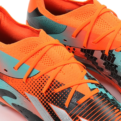 ●さらなる軽量性と高いフィット感を追求した「スピードスキン2.0」アッパーを採用。優れた軽量性で、主に1試合を通して多くの『スプリントスピード』に貢献。部分的に凹凸加工を施すことでボールのグリップ性も向上。