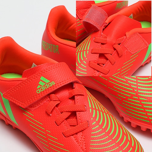 - 2022年秋の新作コレクション『GAME DATA(ゲーム データ) PACK』が登場。想像を超えていけ。決定的な違いを生むコントロールを追求したadidas「PREDATOR EDGE(プレデター エッジ)」のTF(ターフコート)対応ジュニア用エントリーモデルトレーニングシューズのHook&Loop(ベルクロ)タイプ。