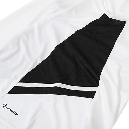ゴールネットにインスパイアされたグラフィック入りの通気性のあるサイドメッシュパネルを配したデザイン。AEROREADYファブリックが肌から汗を素早く吸収して排出し、常に次のチャンスを窺うプレーヤーをサポート。