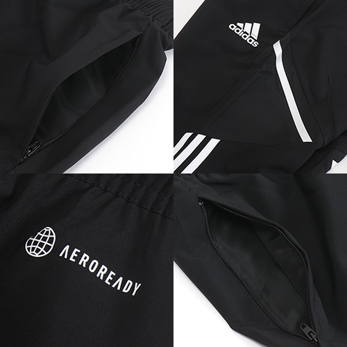 吸湿性に優れたAEROREADYファブリックを使用した、ドライで爽やかな着心地を維持する一着。脚にあしらったジップ付きのカーゴポケットには、携帯電話を安全に収納可能。