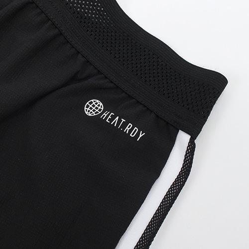 通気性・速乾性・冷却性に優れた、adidas最高峰のクーリングテクノロジーHEAT. RDYを採用。メッシュのストライプスとウェストバンドのおかげで身体をクールに快適に保ち、暑い日のハードなトレーニングも涼しく乗り切れる。