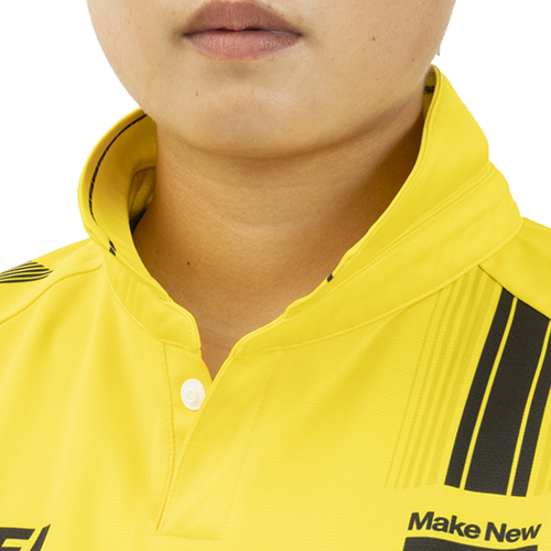 サッカーの伝統的スタイルの衿付きデザインを現代へとアップデート。シャープな衿形状で伝統的でありながらモダンなデザインに昇華させた。