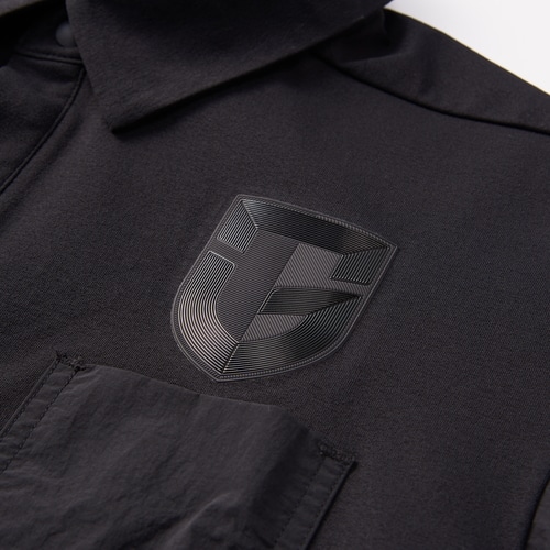 胸にガンバ大阪のエンブレムを配置したストレッチ性があり、程よい張り感の天竺素材を使用したTシャツ。左胸ポケットは異素材生地でアクセントに。