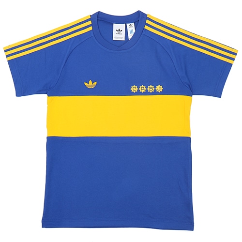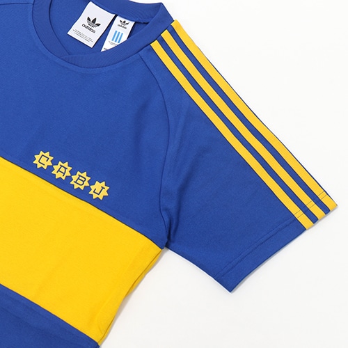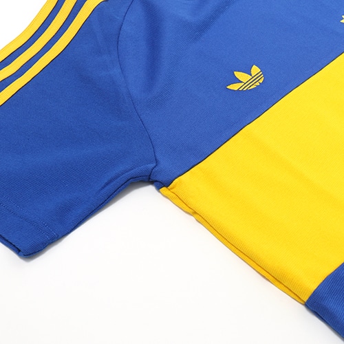 - adidas ORIGINALS×ボカ・ジュニアーズのコラボレーションアイテム、1981年に当時のクラブの選手が着用していたユニフォームを、忠実に復刻したモデル。クラブの伝説的プレーヤーたちのウェアと同じ色使い、プリント、スリムなシルエット、そしてナンバーを採用。