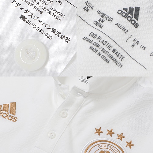 - ドイツ代表の2022年モデル、ドイツ代表チームのサポーターに贈るホームカラーのピケポロシャツ。チームを象徴する白と黒のホームカラーに、ゴールドのディテールをあしらったポロシャツ。ソフトなピケ素材が、時代を超えても色褪せないルックスと雰囲気を演出。