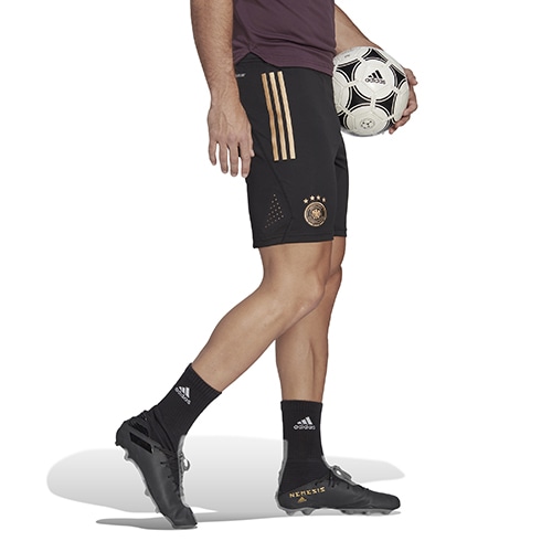 - ドイツ代表の2022年モデルのPROショーツ。リサイクル素材で作られた、涼しいトレーニングショーツ。トレーニングに励むときにクーリング効果を発揮する、HEAT. RDYとメッシュのディテールが特徴。