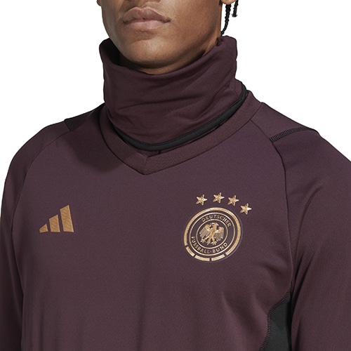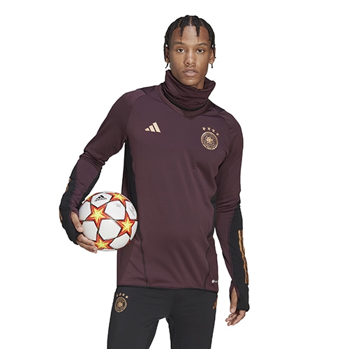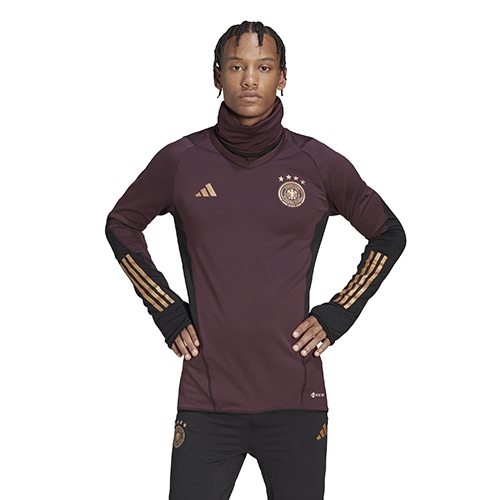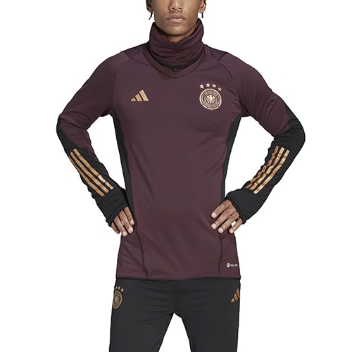 - ドイツ代表の2022年モデルのPROウォームトップ。パーレイ・オーシャン・プラスチックを一部用いた、トレーニングトップ。ドイツ代表チームが、寒い時期のトレーニングに着用できるように作られたもの。保温性を発揮するCOLD. RDYとすっきりしたシルエットが、機敏な動きを妨げず、快適な着心地を提供する。高い襟と袖口のサムホールが、さらなるカバー力を発揮。