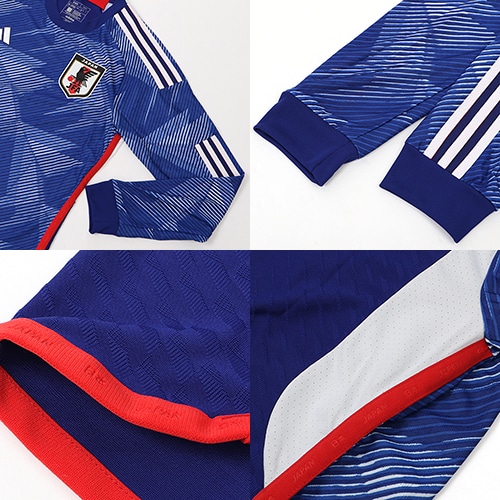 - サッカー日本代表・サムライブルーの2022年ホームモデル長袖オーセンティック(選手着用モデル)ユニフォーム。*ジャパンサイズ。