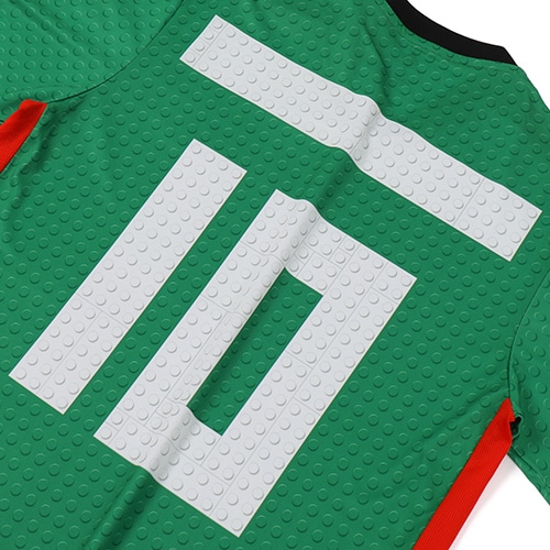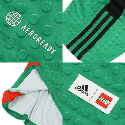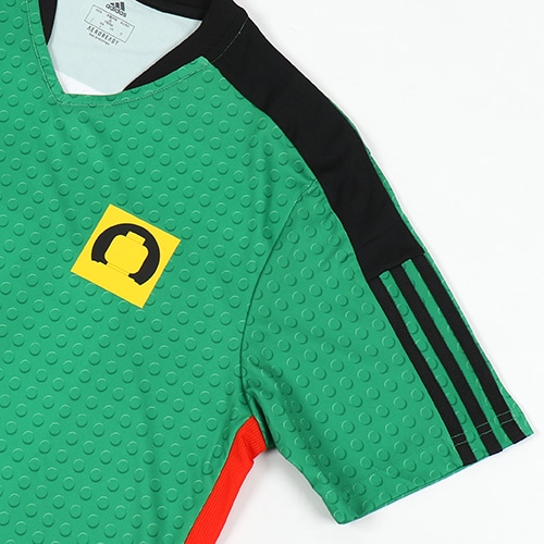 LEGOのミニフィギュアにインスピレーションを得たチームエンブレムが群衆の中でひと際目を引きそう。背面には、LEGOブロックで作られた背番号が完璧な仕上がりを提供します。吸湿性を発揮するAEROREADYテクノロジーを採用したソフトな生地が、快適な着心地をキープする。