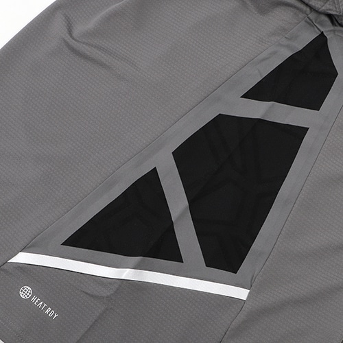 暑さのなか身体を涼しく保つ、HEAT. RDY機能を施した作りに、風を通すメッシュのサイドパネルとスリーストライプスをあしらっている。
