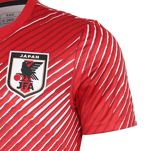 - サッカー日本代表・サムライブルーの2022年モデルのプレマッチジャージー。