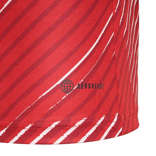 サッカー日本代表チームが好調なスタートを切るための一着。ORIGAMIコンセプトのホームユニフォームのデザインをベースにして日の丸をイメージした赤で表現。キックオフ前のウォームアップで代表選手たちが着用する、スリムなジャージー。汗を吸収するAEROREADYのウェアだから、試合開始のホイッスルを爽やかな着心地で迎えられる。プラスチック廃棄物ゼロを目指すアディダスの取り組みの一つをカタチにした、100%リサイクル素材で作られたアイテム。