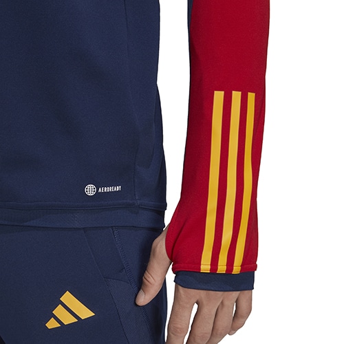 - スペイン代表の2022年モデルのトレーニングトップ。通気性を発揮するメッシュのインサートと、汗を吸い取るAEROREADYテクノロジーを採用。