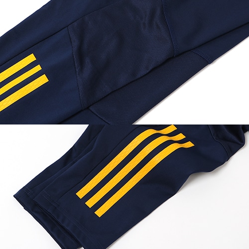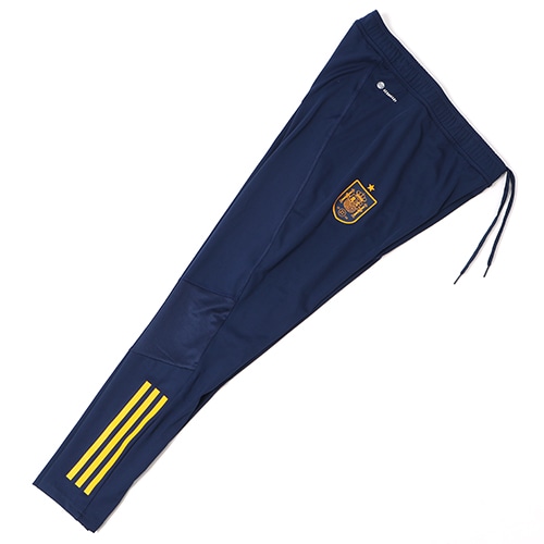 - スペイン代表の2022年モデル、リサイクル素材で作られた、スリムなスペイン代表トレーニングパンツ。スプリントの動きを遮らない、クロッチ周りの布地に余裕を持たせた作りと、吸湿性を発揮するAEROREADY機能による、快適な着用感が特徴。