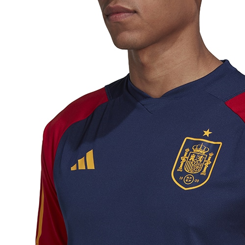- スペイン代表の2022年モデルのトレーニングジャージー。リサイクル素材で作られた、スペイン代表のトレーニングジャージー。AEROREADY素材が汗を素早く吸収し、快適な着心地をキープ。